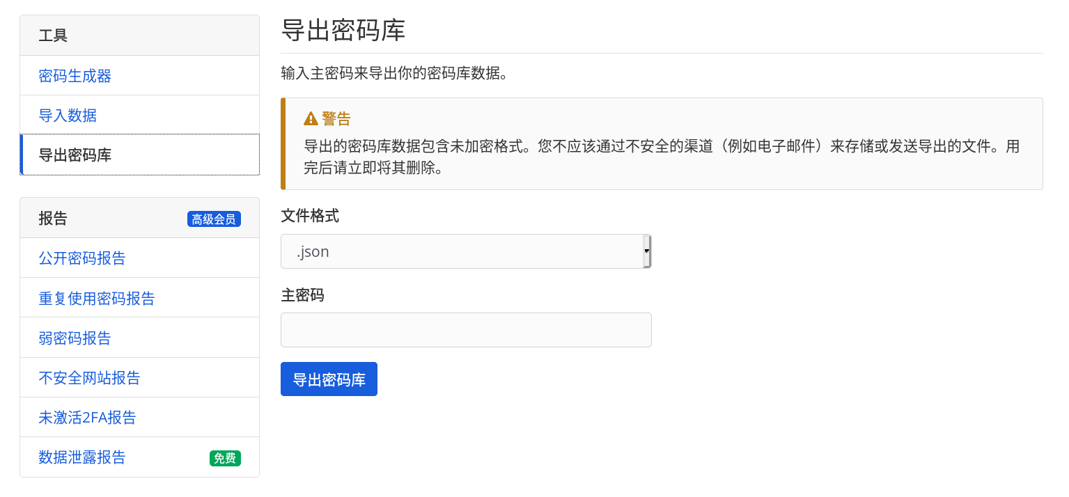 如果你想从 Bitwarden 换到其它密码管理器,你也可以这么做: