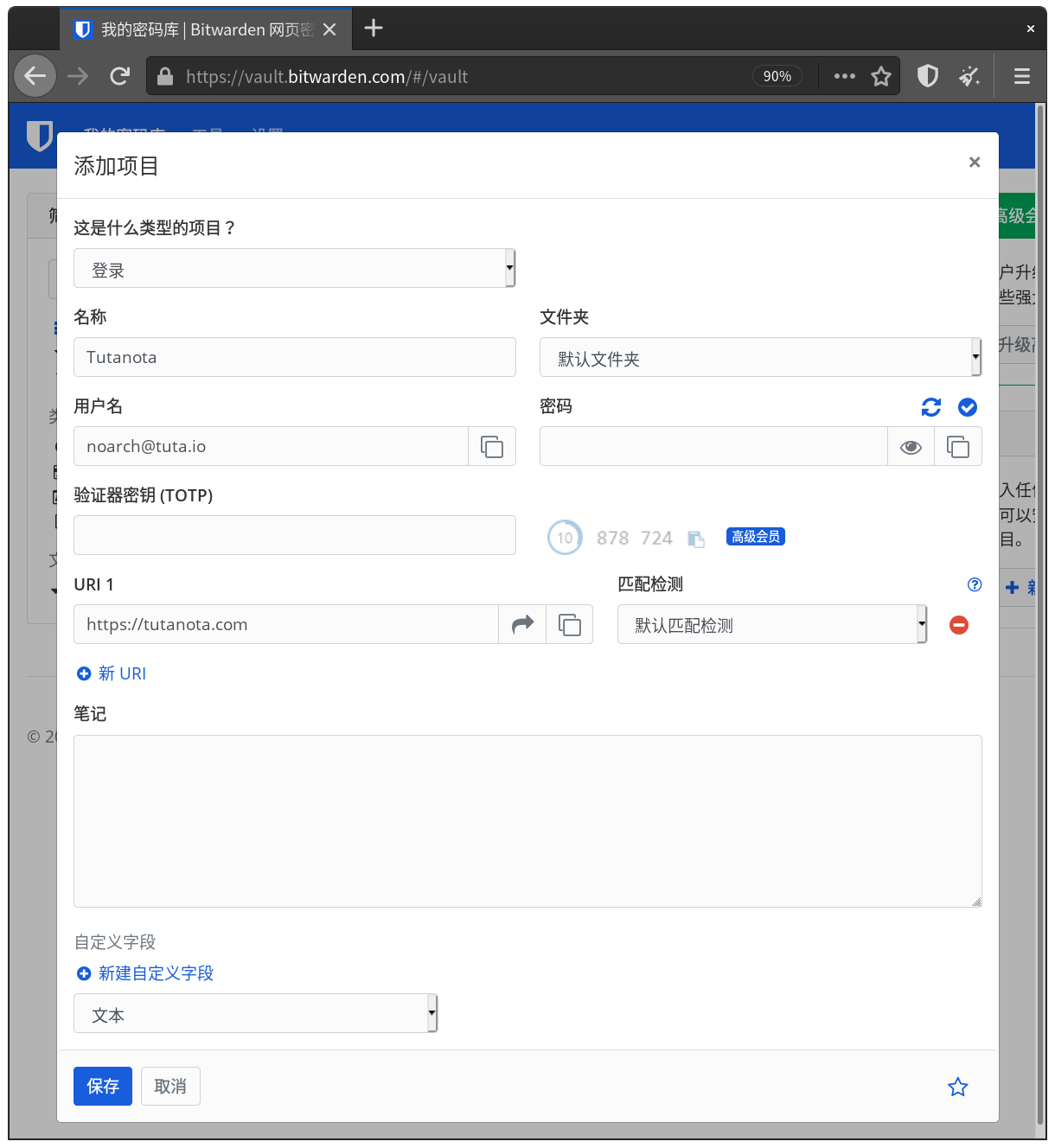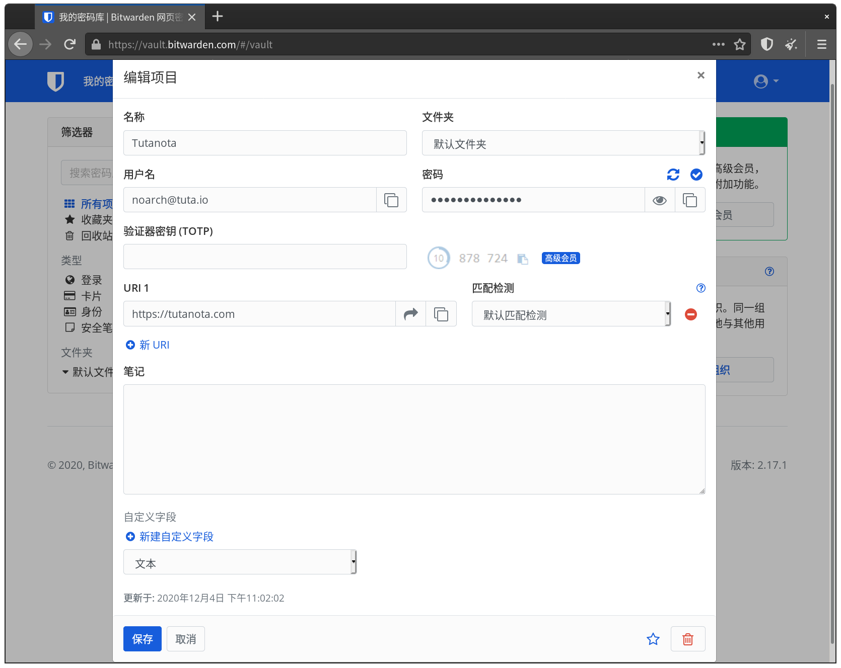 - 用于自动填写。这个会在你使用 Bitwarden 浏览器插件或手机应用时有用。