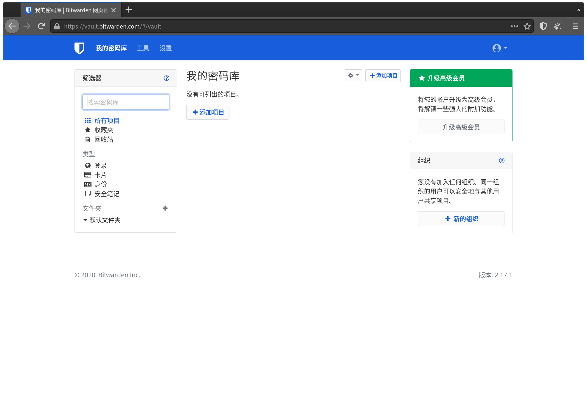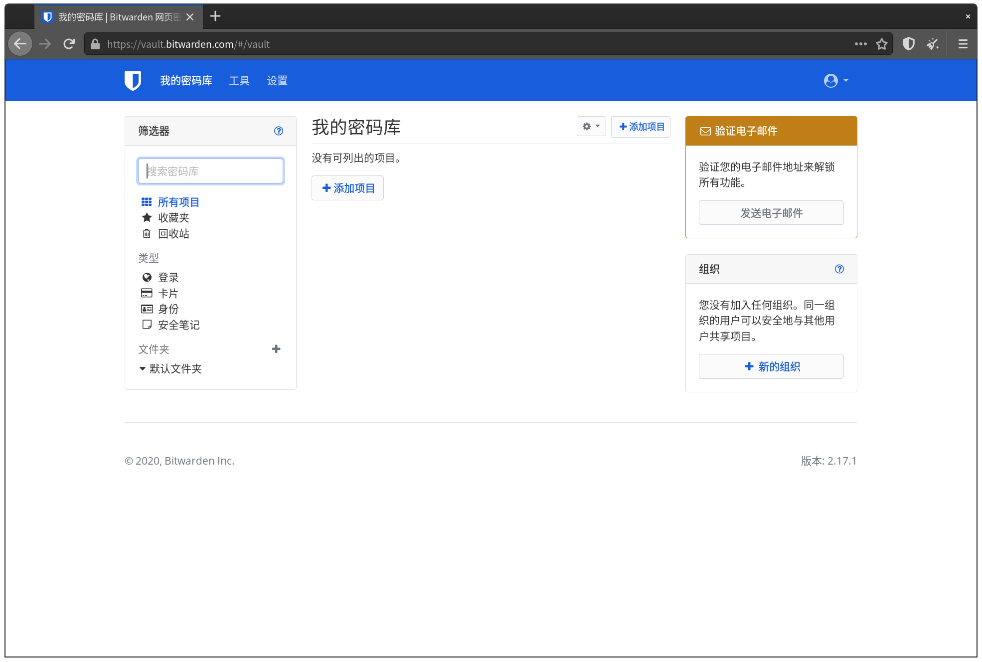 本章要讲述的是 Bitwarden 的网页版密码库。